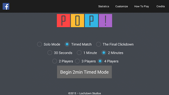 Get two to four of your closest friends or family together around your phone or tablet and get ready for an exciting competition as you try to score the most points possible! Click your colour as soon as it pops up! The player with the most points wins!